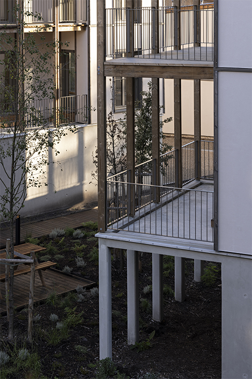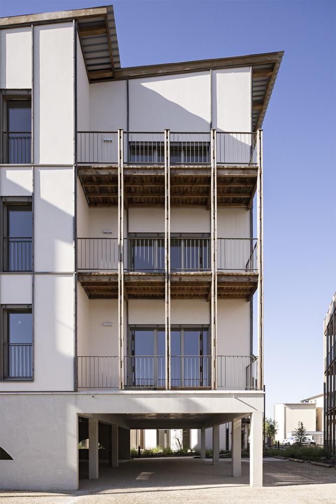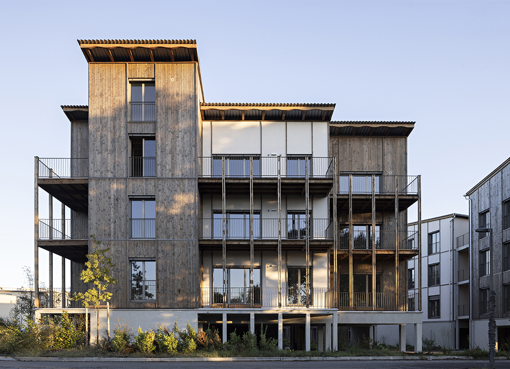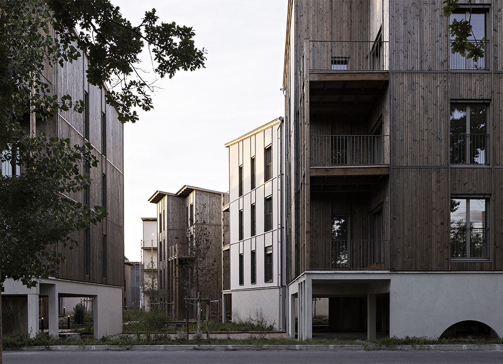 L'ambition du projet de Biganos : construire en terre à grande échelle. Le projet fonde sa pertinence dans la résolution d'enjeux liés a sa position territoriale entre métropole et bassin d'Arcachon, dans son défi constructif lié à la terre, et ses problématiques architecturales liées à la mixité de son programme. Celui-ci se compose de dix maisons individuelles, d'une résidence sociale et d'un ensemble de logements collectifs. La réponse que nous proposons s'inscrit en corrélation avec un tissu environnant contrasté en jouant sur les ressorts sensibles de la perception de sa densité. Sa résolution formelle puise dans les codes d'une architecture ordinaire dite "analogue" (gabarits, silhouettes, matières et signes) et permet de se réinscrire dans une écriture locale tout en se donnant de grandes libertés d’assemblage et de détournement.